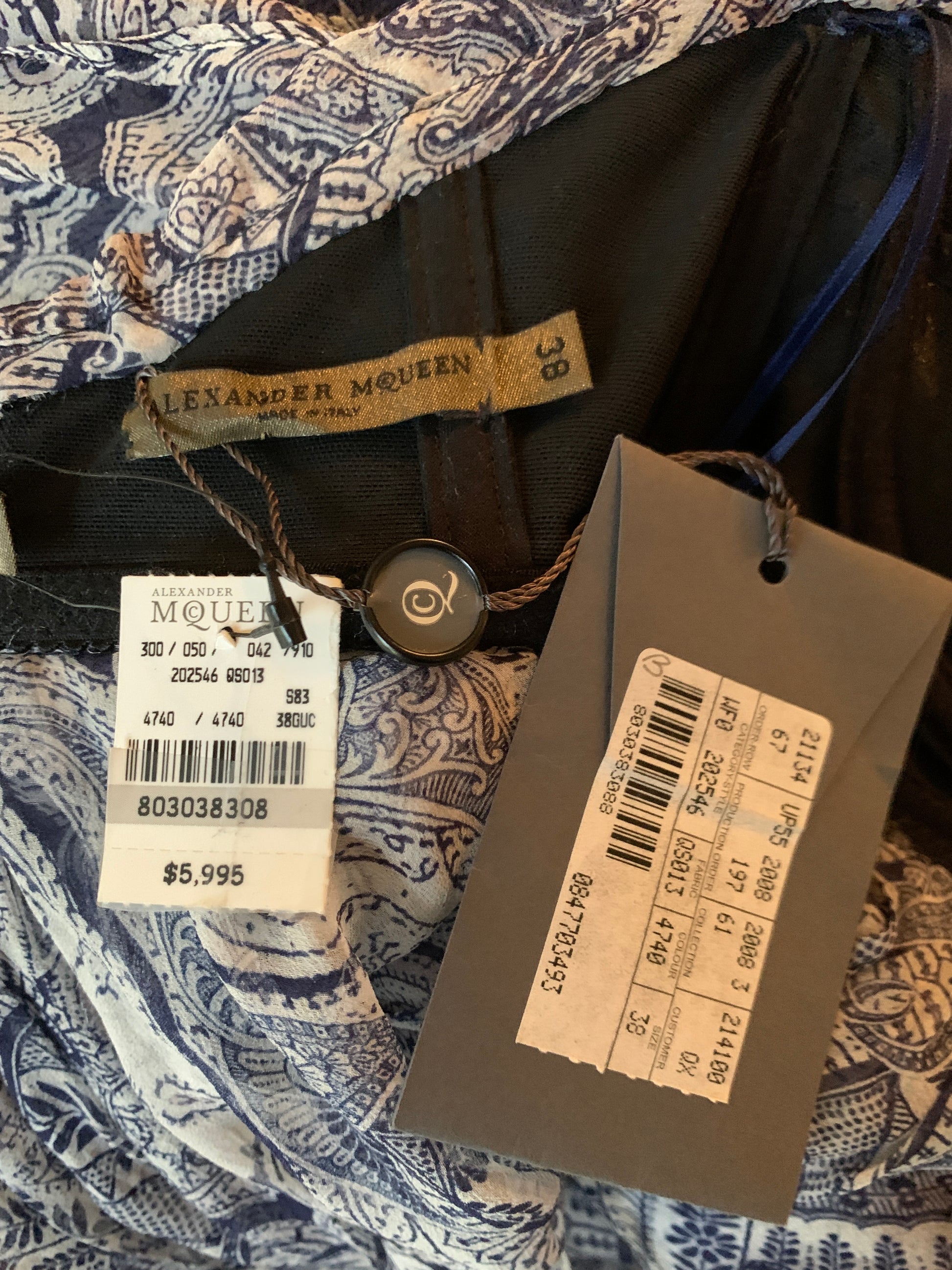 Unworn 2008 Alexander McQueen Blue Paisley Silk Chiffon Dress